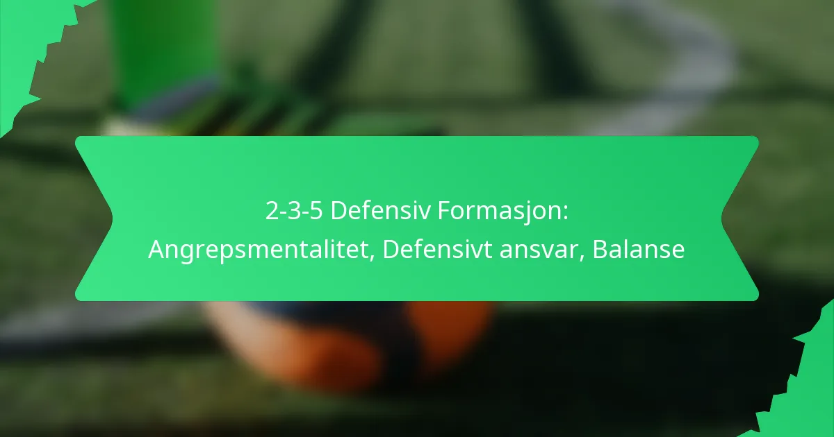 Den 2-3-5 defensive formasjonen er en taktisk oppstilling i fotball som har to forsvarsspillere, tre midtbanespillere og fem angrepsspillere, og legger vekt på en offensiv tankegang. Denne formasjonen prioriterer ikke bare offensivt spill, men krever også en strukturert tilnærming til defensive oppgaver, noe som sikrer at lagene kan opprettholde integritet mens de raskt går mellom angrep og forsvar. Ved å balansere disse elementene, skaper 2-3-5 muligheter for scoring samtidig som det legges press på motstanderne.