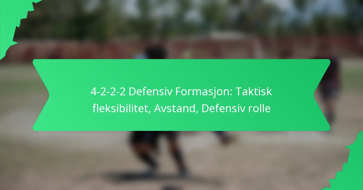 4-2-2-2 defensive formasjonen er et taktisk oppsett i fotball som legger vekt på en sterk defensiv struktur samtidig som det tillater raske overganger til angrep. Den har fire forsvarsspillere, to sentrale midtbanespillere og to offensive midtbanespillere, som gir både stabilitet og fleksibilitet på banen.