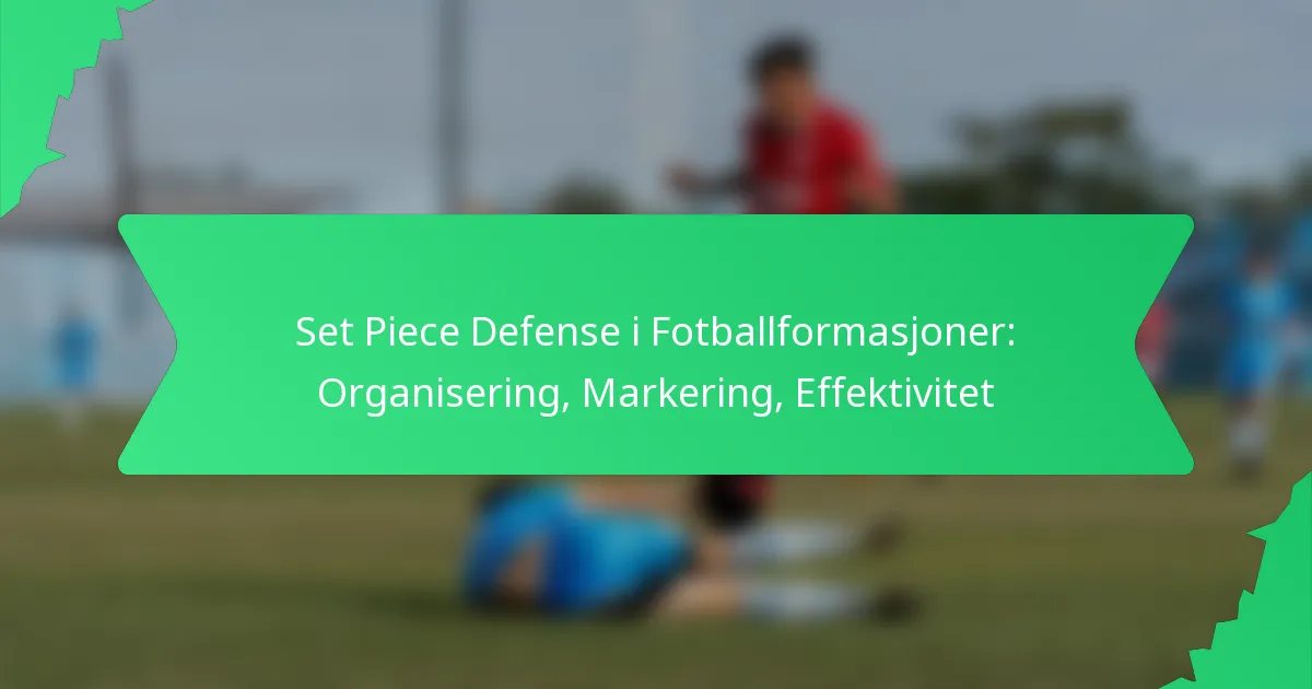 Set piece-forsvar i fotballformasjoner involverer strategisk organisering for å motvirke frispark, hjørnespark og innkast, som er kritiske øyeblikk som kan føre til mål. Ved å implementere strukturerte formasjoner og definerte spillerroller kan lag effektivt minimere scoringsmuligheter gjennom klar kommunikasjon og koordinering. Ulike markeringsteknikker, inkludert mann-mot-mann, zonal og hybrid markering, påvirker ytterligere effektiviteten av et lags defensive innsats i disse avgjørende situasjonene.
